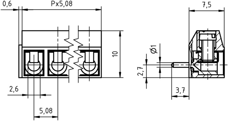 - Spacing 5.08 mm